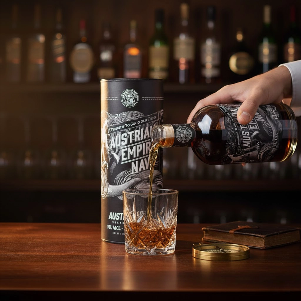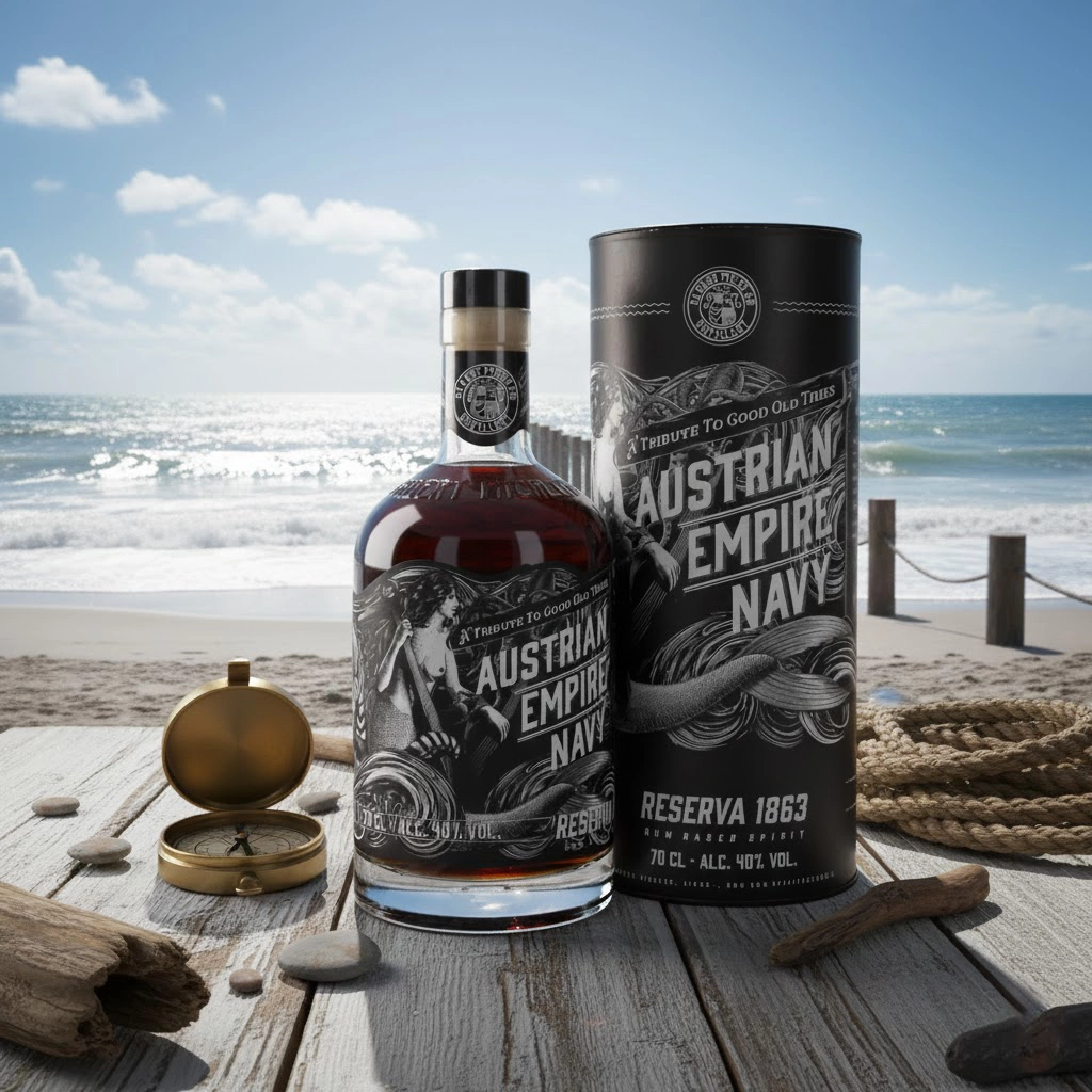 Der Austrian Empire Navy Rum Reserva 1863 ist ein kraftvoller Premium-Rum aus Barbados, hergestellt aus traditioneller Melasse. Er ehrt das Erbe der 1863 gegründeten Albert Michler Distillery und verbindet Geschichte mit Handwerkskunst.