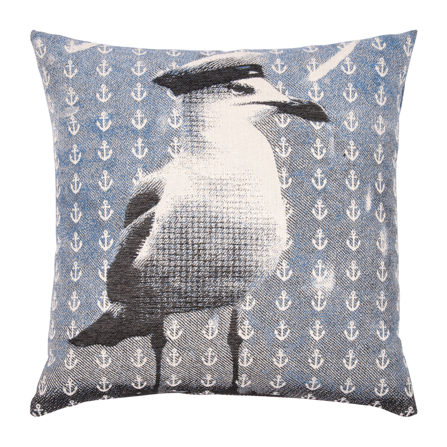 Die pad design Kissenhülle Captain bringt Küstenflair und eine Prise Humor in dein Zuhause. Im Mittelpunkt steht das detailreich gewebte Motiv einer Möwe im Kapitänsstil – ein echtes Highlight für Sofa, Sessel oder Bett.