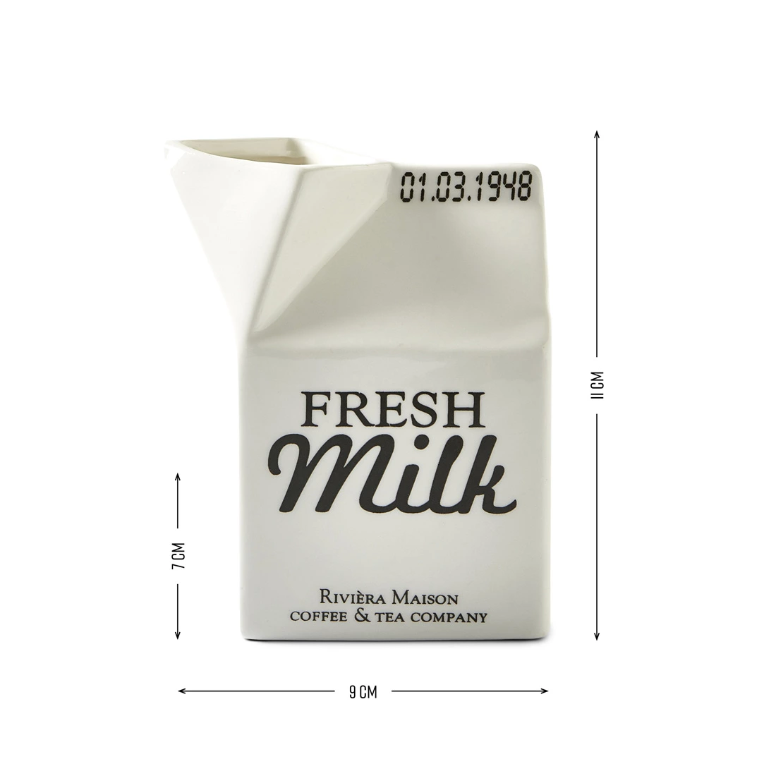 Hast du schon das Datum oben auf der Lasche entdeckt? Was auf den ersten Blick wie ein Mindesthaltbarkeitsdatum aussieht, ist in Wahrheit eine charmante Hommage an die Geschichte der Marke: Es ist das Gründungsdatum von Rivièra Maison. Genau diese liebevollen Kleinigkeiten machen das "Carton Jar" zu mehr als nur einem Milchkännchen.
