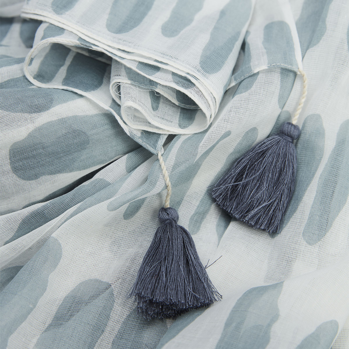 Der Schal Felicia von the moshi in Grau kombiniert modernes Design mit einem angenehm leichten Tragegefühl. Sein stilvolles Allover-Muster in Grau-Blau auf hellem Grund verleiht ihm einen frischen und gleichzeitig eleganten Charakter. Gefertigt aus 100 % Baumwolle ist er atmungsaktiv, weich und bietet ein natürliches, komfortables Gefühl auf der Haut – ideal für jede Jahreszeit.